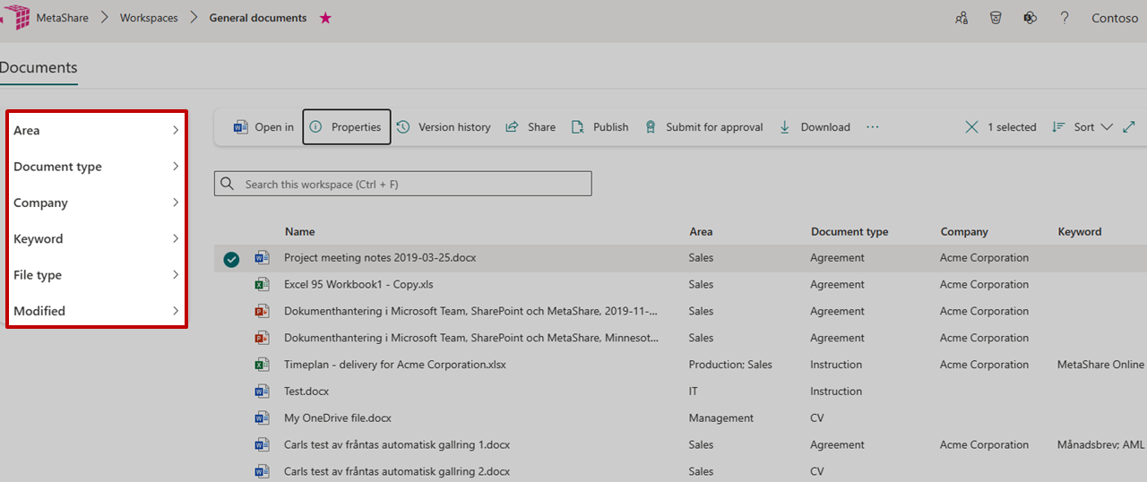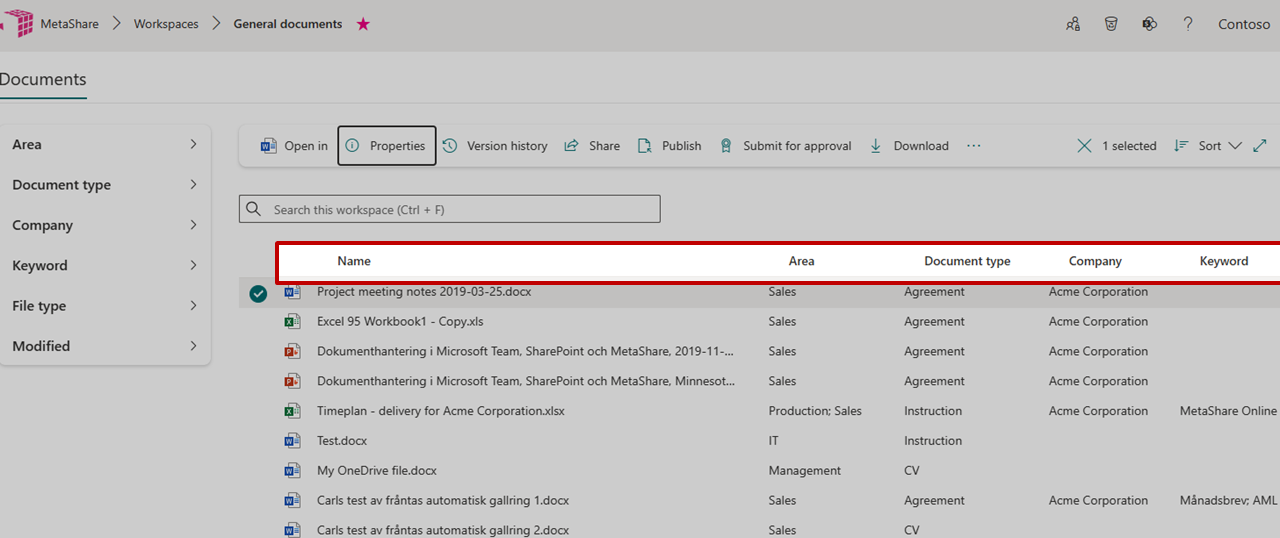 1. Which content types to attach to the document library in workspaces of the specific configuration (defines the fields to fill in when uploading/creating documents):