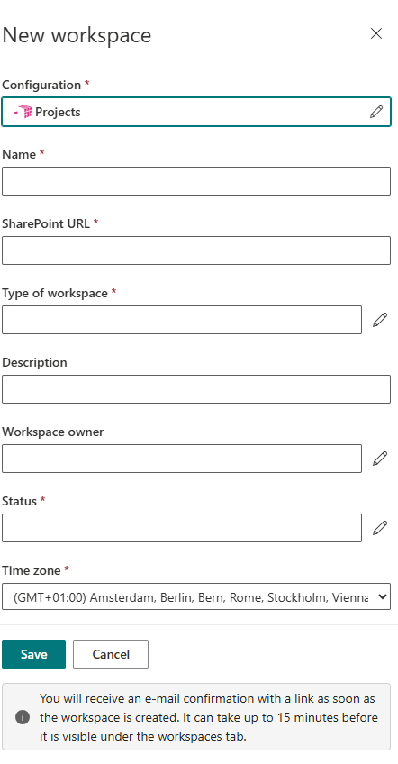 1. The workspaces’ metadata (the fields to fill in when creating a new workspace of the specific configuration):